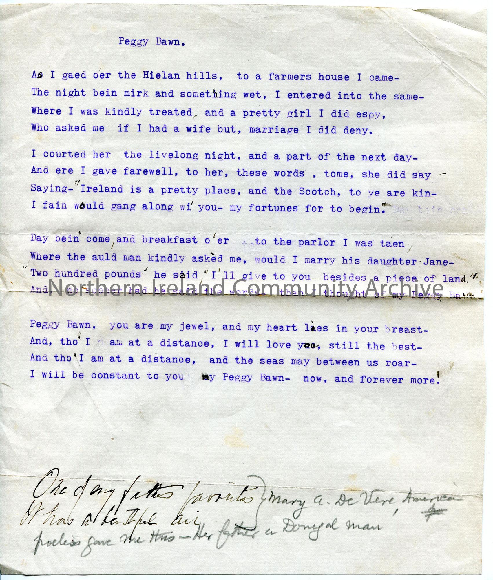 Typed words to ‘Peggy Bawn’ uses local dialect set in ‘the Hielan